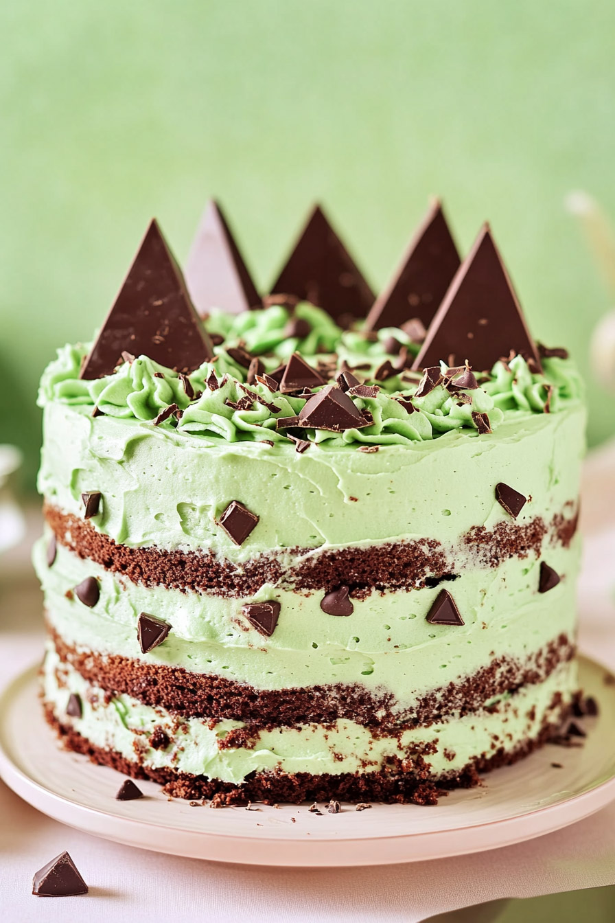The bright green frosting and chocolate accents? Pure showstoppers. Whether you’re celebrating a birthday, hosting a dinner, or just craving something special, this cake checks all the boxes.
