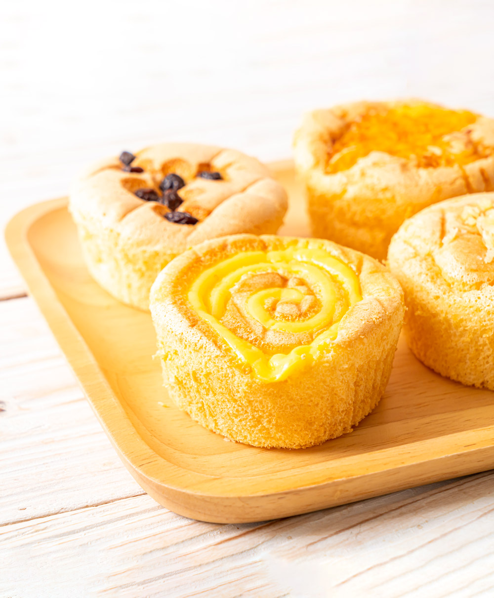 These fluffy sponge cupcakes are light, soft, and customizable with a variety of delicious toppings. From smooth custard swirls to golden egg yolk threads or savory shredded cheese, they’re perfect for any occasion—simple enough for everyday treats yet elegant for special gatherings.